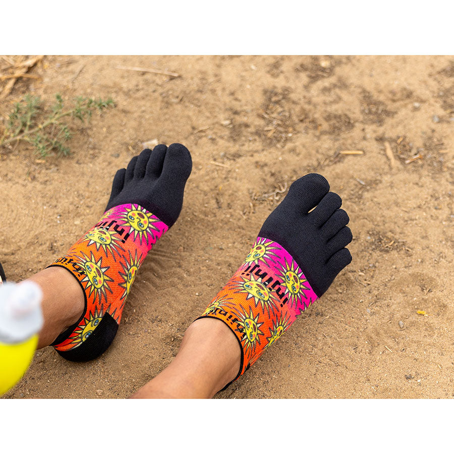 インジンジの5本指ソックスは足の指先まで規制されない自由な動きを提供します。5本指のデザインと厳選された優れた素材でどんな距離、どんな道を走っても通気性に優れ常に足をドライに保ちます。