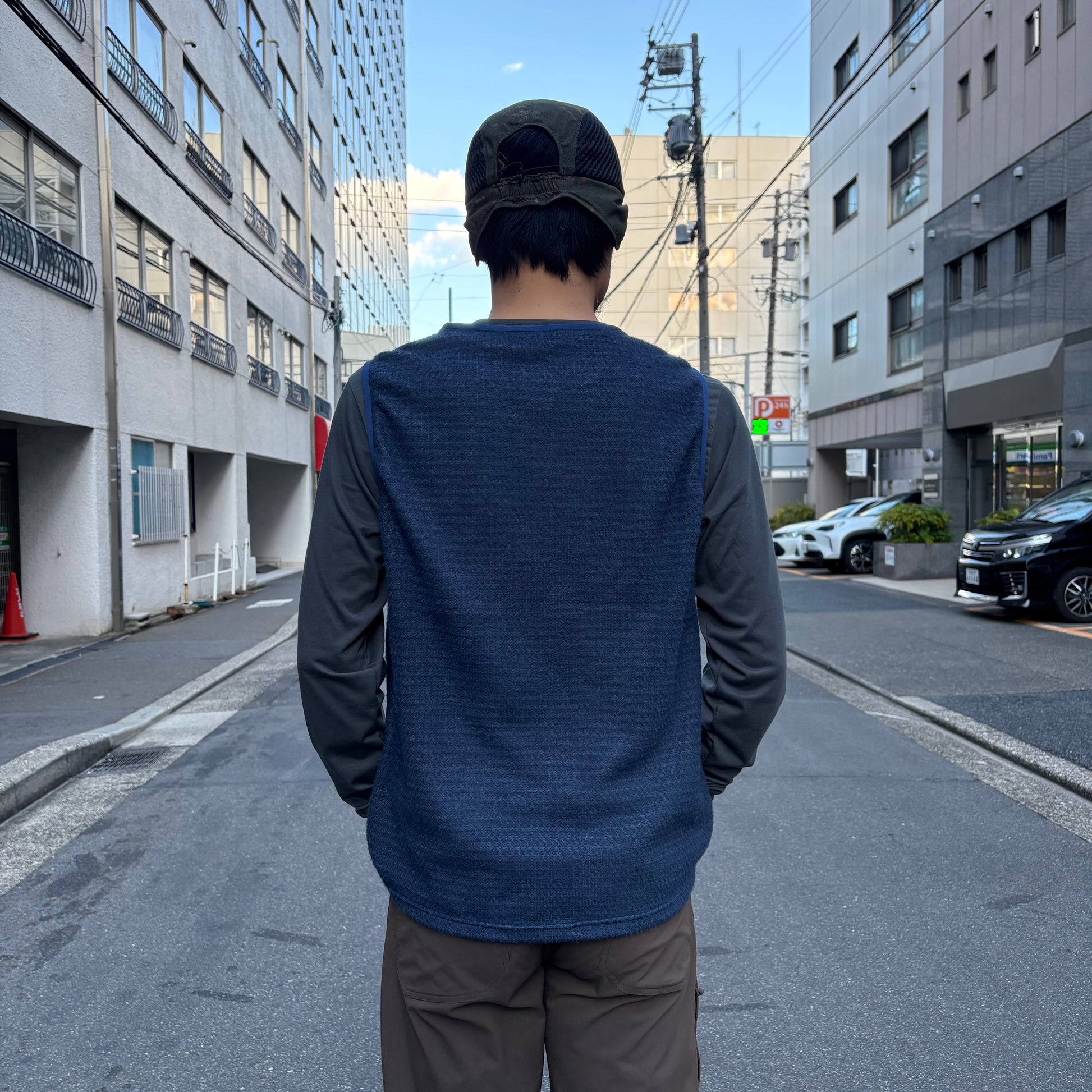 日本製のオリジナルボディは、アクティビティに適した動きやすいシルエットで、Tシャツなどのベースレイヤーにほどよくフィットする。ネックとアームホールは肌触りのよいテープバインダーで補強。縫製部分をフラットにすることでストレスのない着用感。