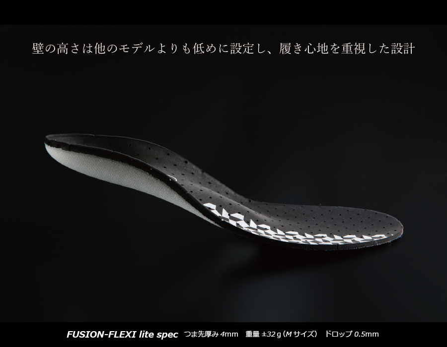 「FUSION-FLEXI LITE」は、足に優しい最高基準のインソールとして皆様にお届けします。