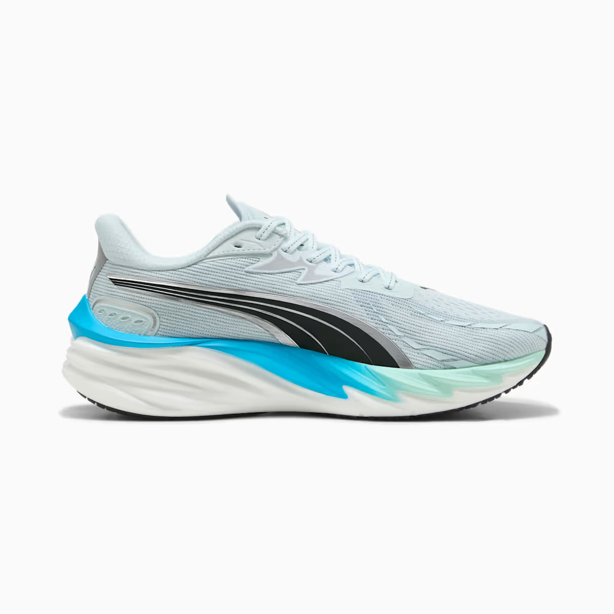 「ヴェロシティ 4」は、すべてのランナーのために設計された次世代ランニングシューズ。記録更新を目指す日も、気ままなジョグの日も、あなたの足元に確かなサポートと軽やかな推進力を提供します。これまでで最も軽量なベロシティは、フルレングスのNITROFOAMミッドソールを搭載し、驚異のエネルギーリターン85%を実現。反発力とクッション性を両立し、長距離でも疲れにくい快適な走りをサポートします。アッパーにはエンジニアードメッシュを採用し、通気性を大幅に向上。さらに、必要な箇所にPWRTAPEを配置することで、軽量ながらもしっかりとしたサポート性を確保。足首周りにはロールカラー構造を採用し、フィット感と快適性を高めています。アウトソールにはPUMAGRIPを使用し、濡れた路面や不整地でも優れたグリップ力を発揮。耐久性にも優れており、最大800kmの走行に対応します。また、アッパーには30%以上のリサイクル素材を使用し、環境にも配慮。サステナブルな選択をしたいランナーにもぴったりの一足です。