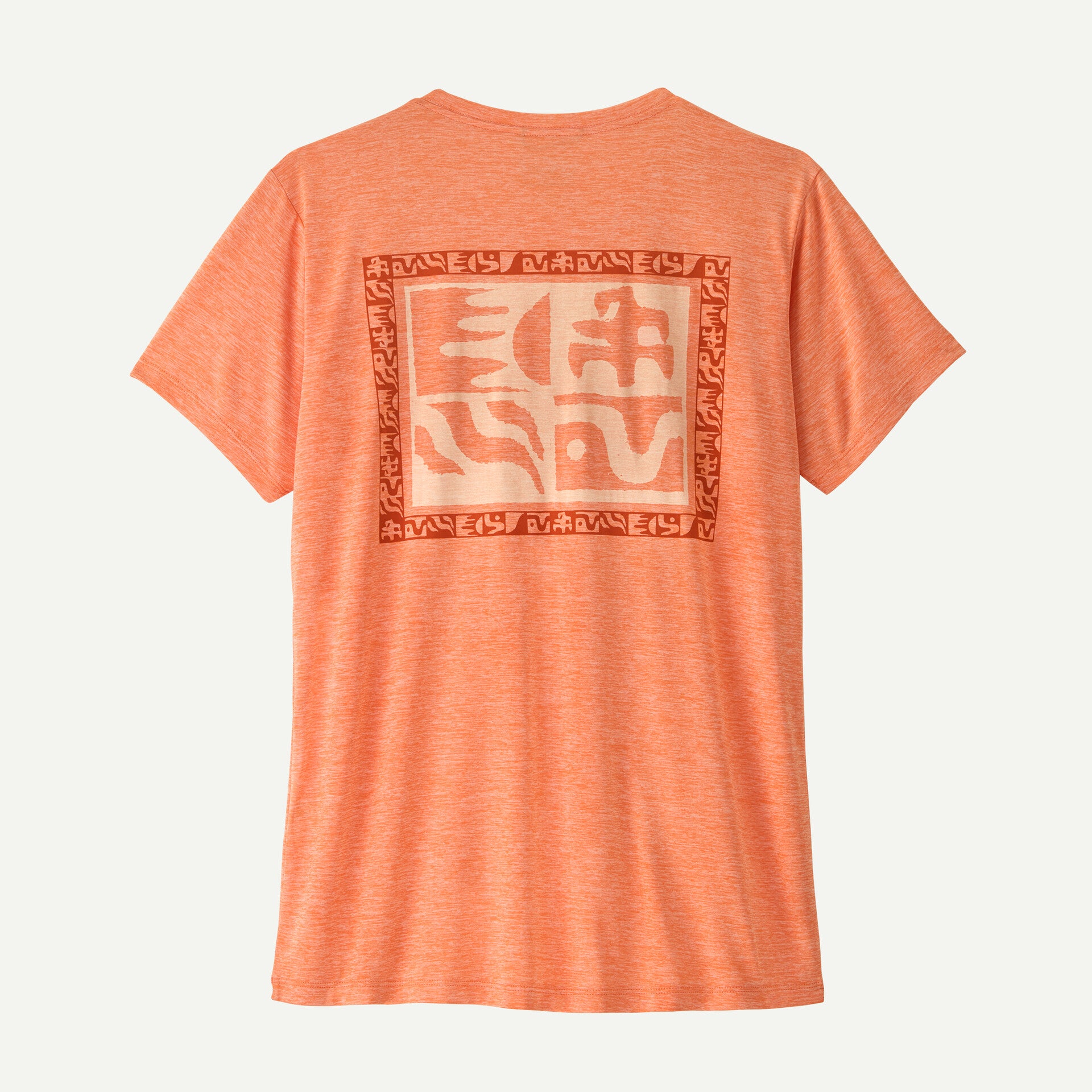 気温が高いときも涼しい着心地のシルクのような素材を使用し、運動中に吸湿発散性と伸縮性を発揮する万能型のテクニカル・Tシャツ。リサイクル・ポリエステルを50〜100%含むキャプリーン・クール・デイリー製品はすべてハイキュ・ミント防臭加工済みで、汗だくになる体のための微気候を管理するデザイン。フェアトレード・サーティファイドの工場で製造
