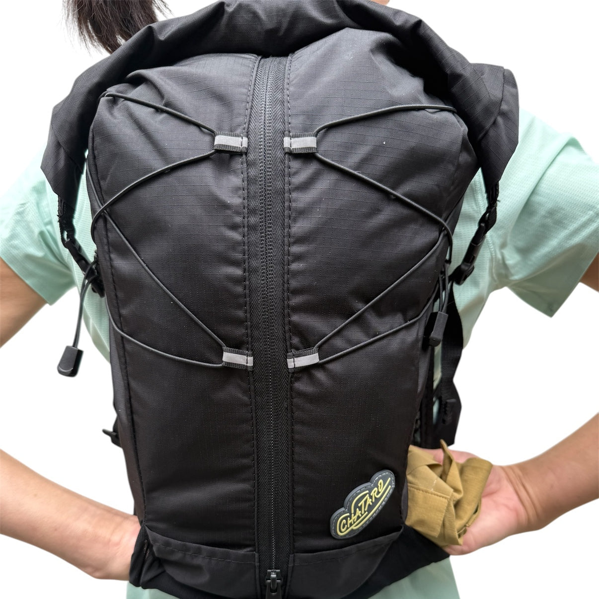 フロントポケットには、500mlのYURENIKUIスポーツボトル、ソフトフラスクをホールド可能!そしてチャタローは、さらにスマホポケットも!