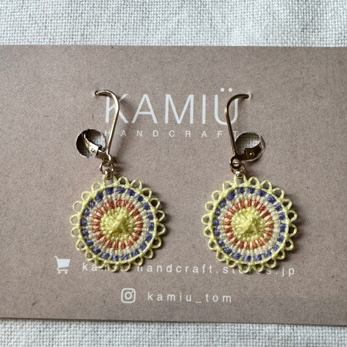 刺繍糸で作っているため、とても軽いつけ心地です。 一つ一つ手作業で刺繍しているため、左右対称ではなく若干の歪み等がある場合がございます。 ご了承ください。