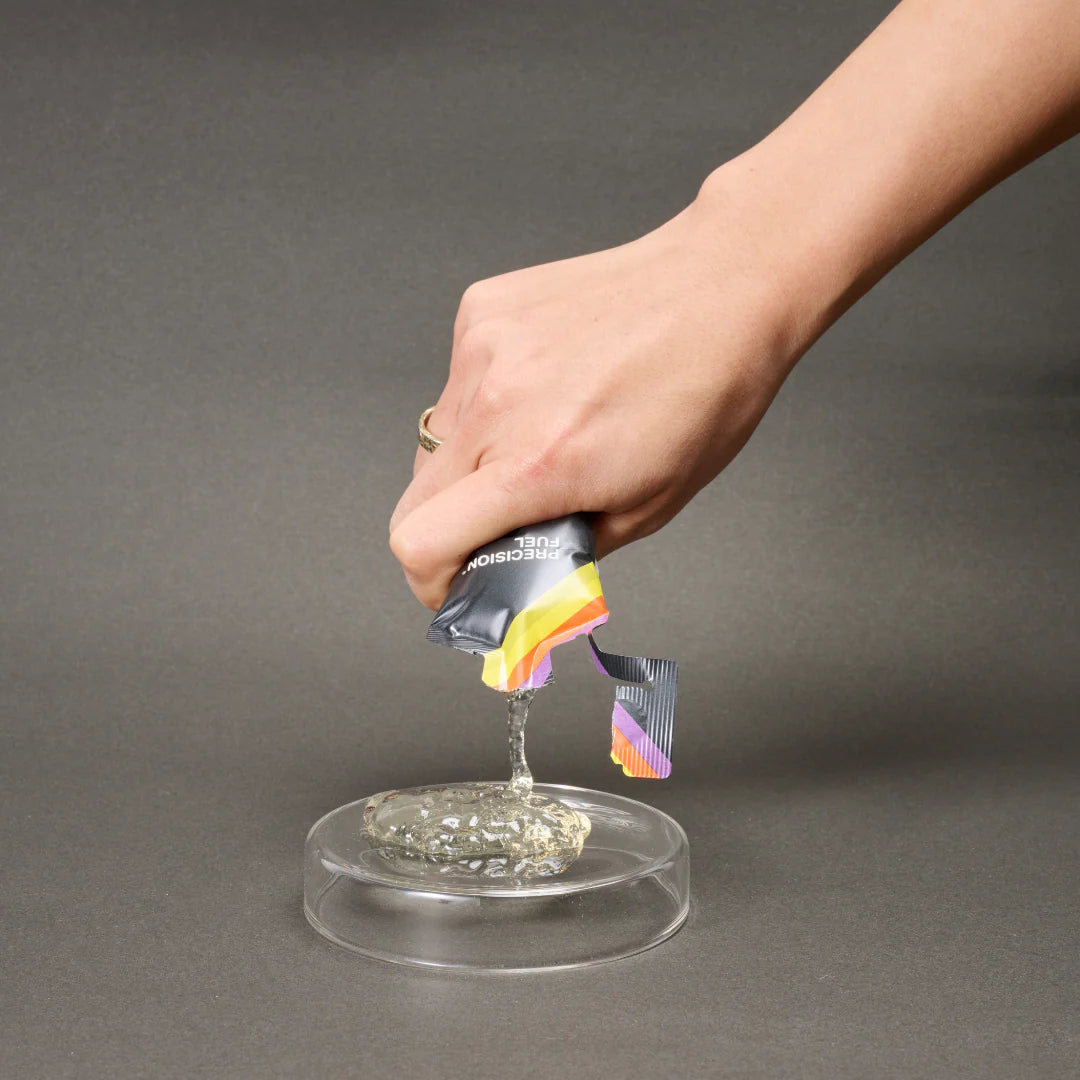 PRECISION(プレシジョン)のエネルギージェルは、1食あたりの炭水化物(そしてこの場合はカフェイン)の量をパッケージ正面に記載することで、これらの数値を簡単に達成できるようにしている。複雑な栄養表を読み解く必要もなく、当て推量もゼロだ。