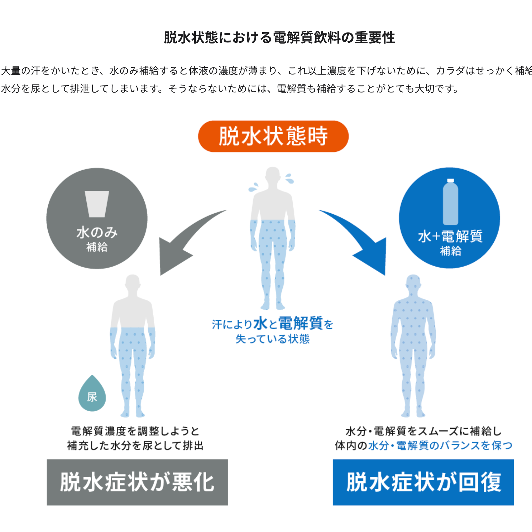 - 通常、激しい運動の前後に使用。また、汗やナトリウムの損失が非常に大きいアスリート向け