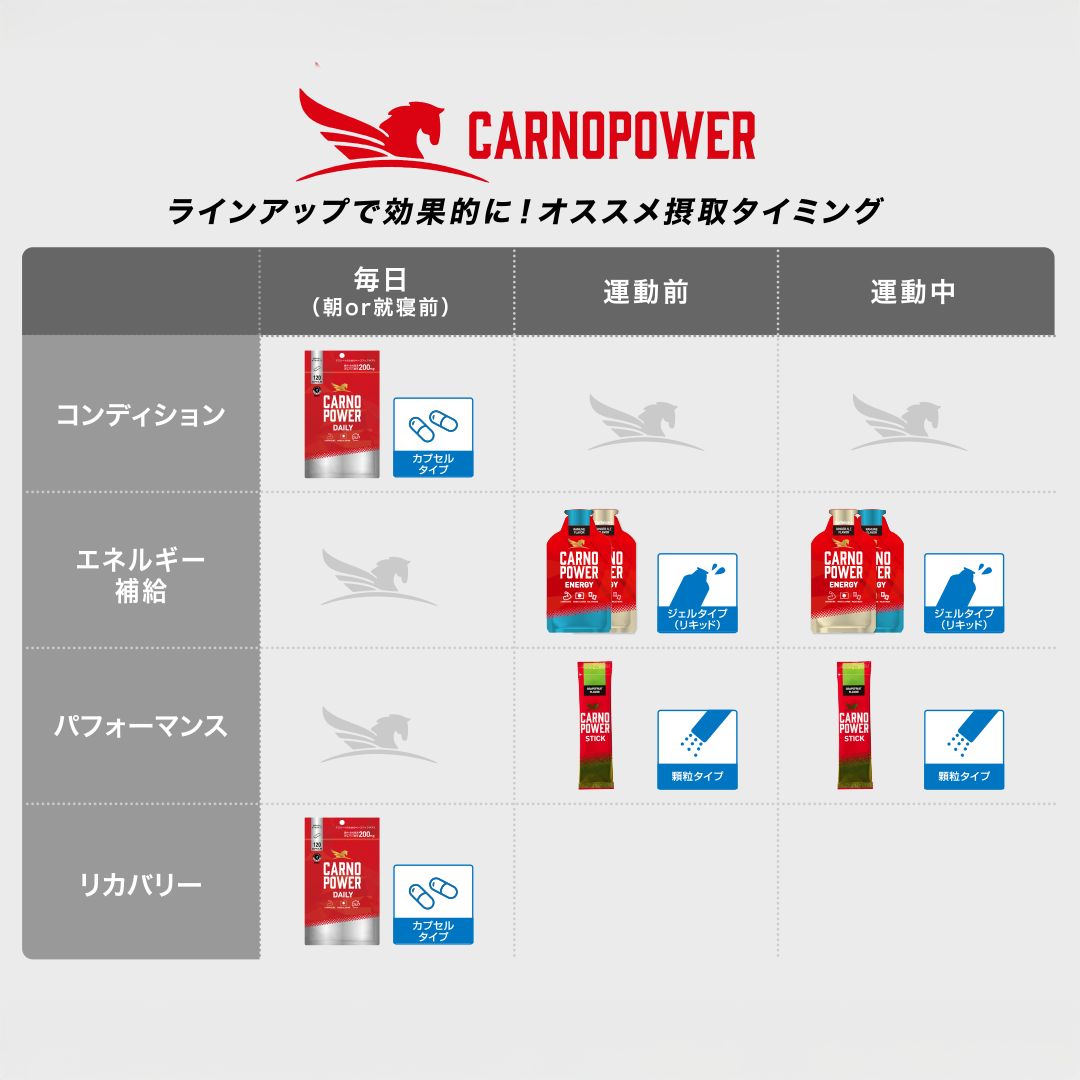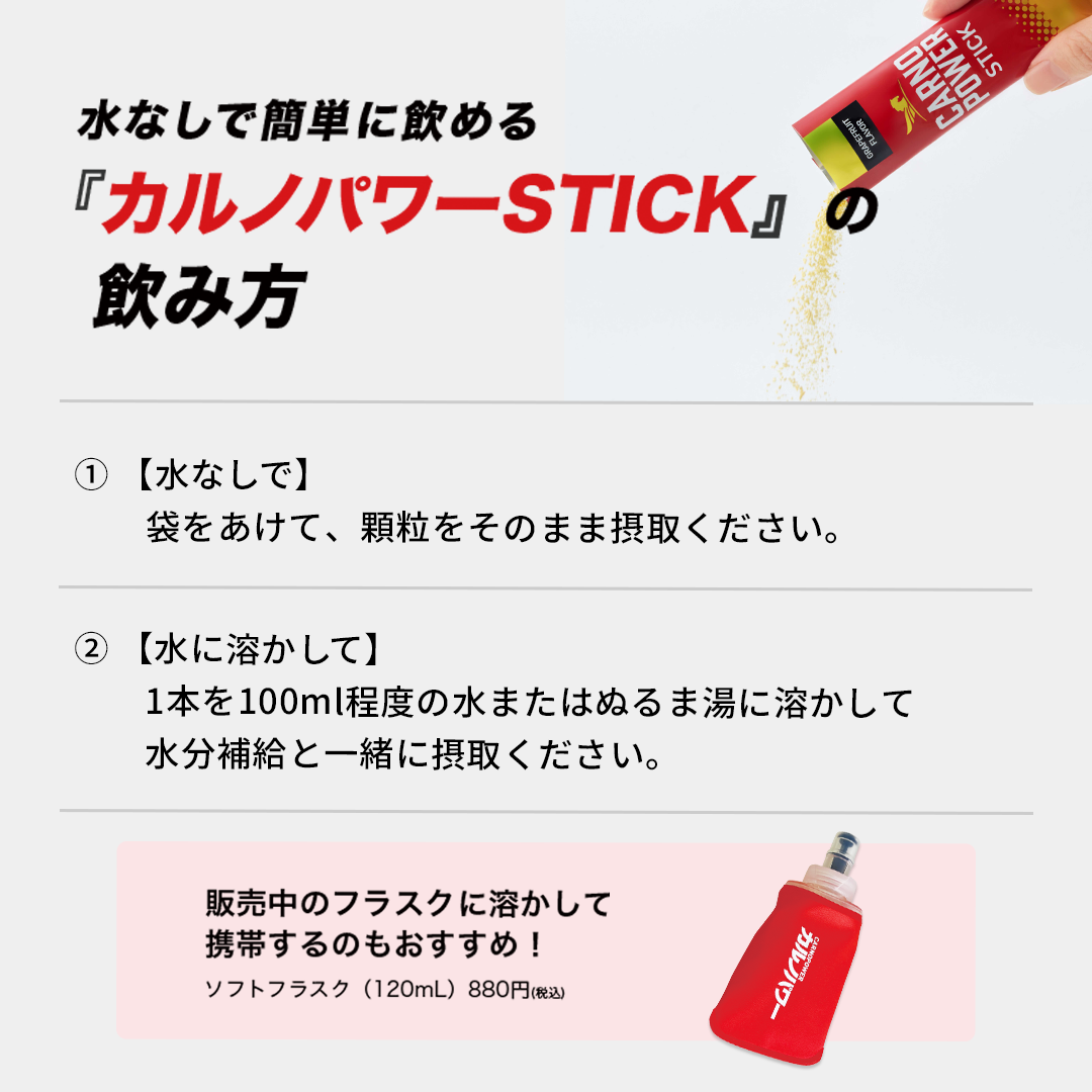 ハイスペックのカルノパワーSTICKでレースなどのハードな運動時のスペシャルケアを!